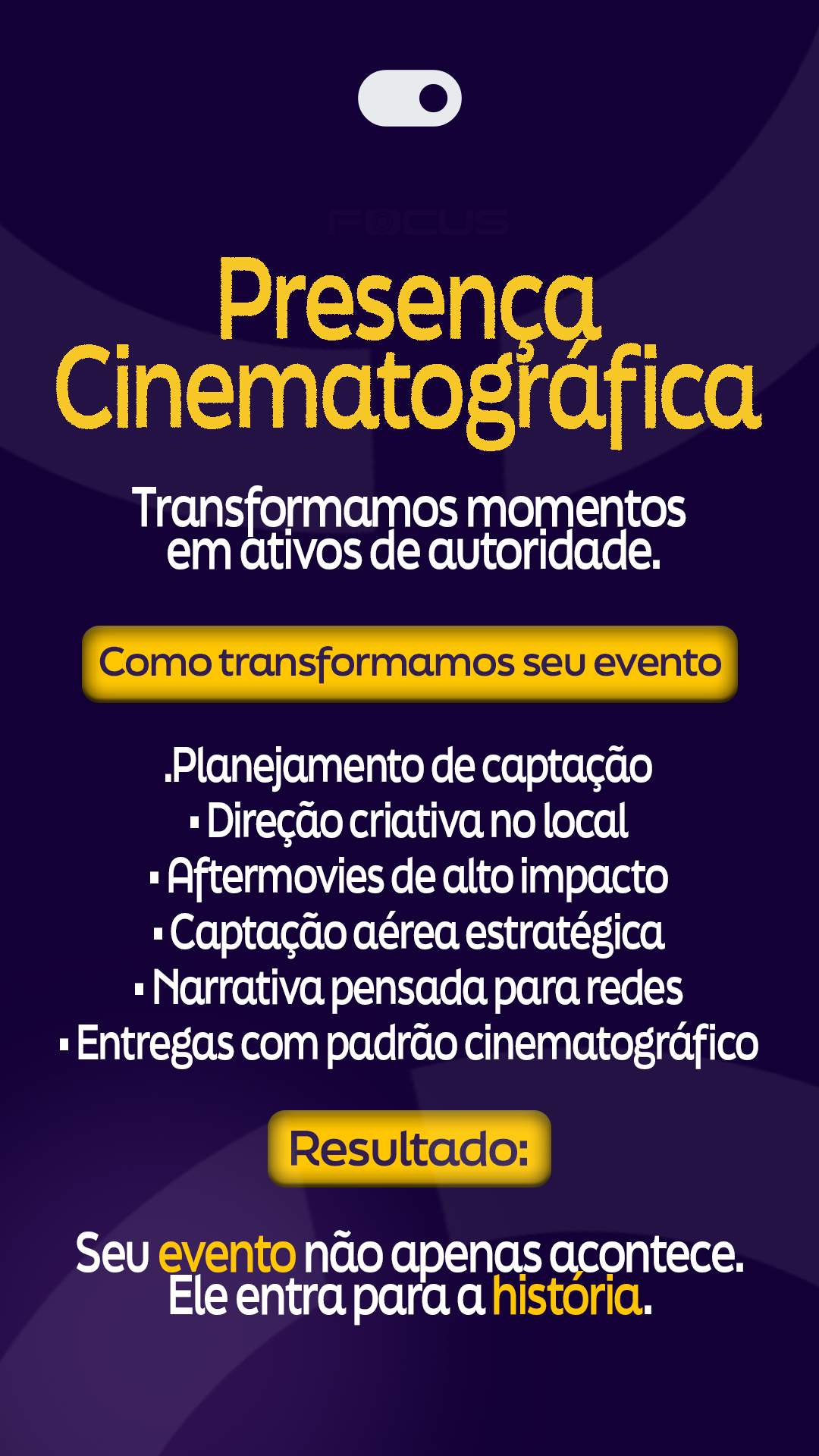 Responsável por produções audiovisuais, captação e edição de vídeos institucionais e comerciais de alto impacto.